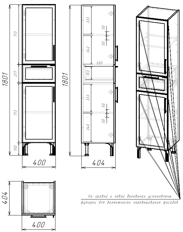 Пенал напольный EvaGold Sofa EG010791 400х1801х404 мм, цвет белый.