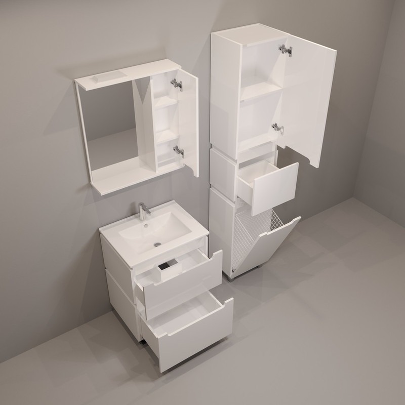 Пенал напольный EvaGold Vesta EG010433 400х1900х335 мм, с бельевой корзиной и ножками, цвет белый глянец.