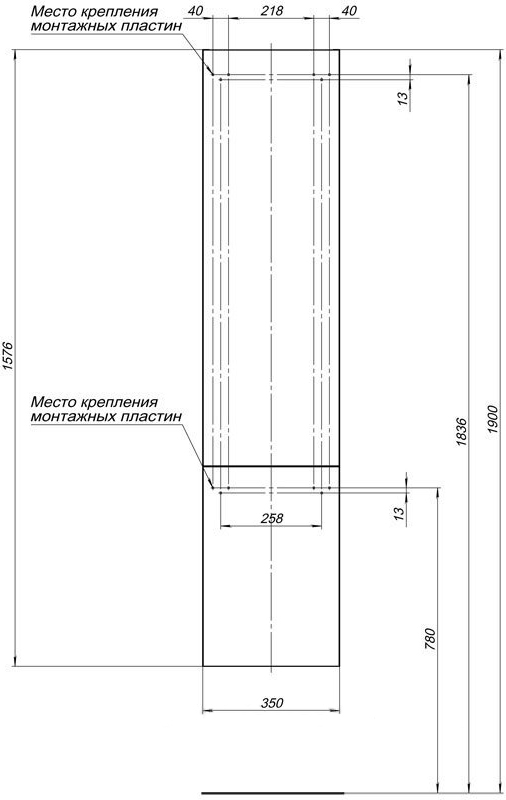 Пенал подвесной Aquanet Алвита 00235359, правосторонний, размер 350x1576x309 мм, цвет белый.