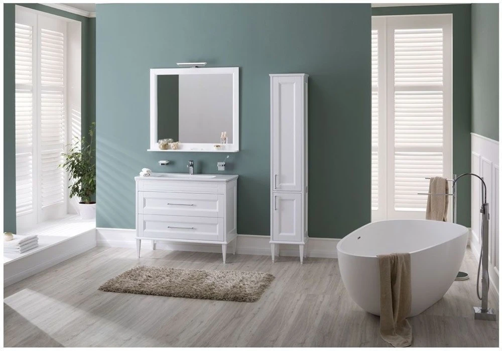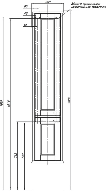 Пенал подвесной Aquanet Бостон М 00242219, правосторонний, ручки - золото, размер 360x1700x330 мм, цвет белый матовый.
