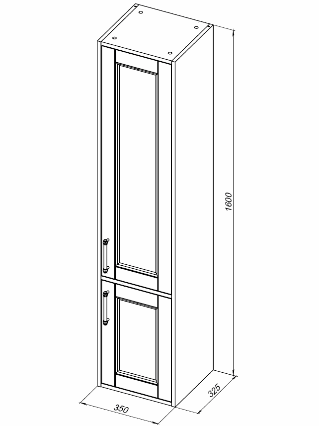 Пенал подвесной Aquanet Бостон New 00306370, правосторонний, ручки - хром, размер 350x1600x325 мм, цвет белый сатин.