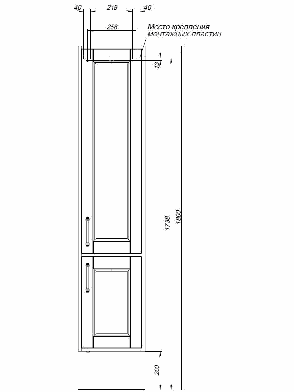 Пенал подвесной Aquanet Бостон New 00347184, правосторонний, ручки - золото, размер 350x1600x325 мм, цвет белый сатин.