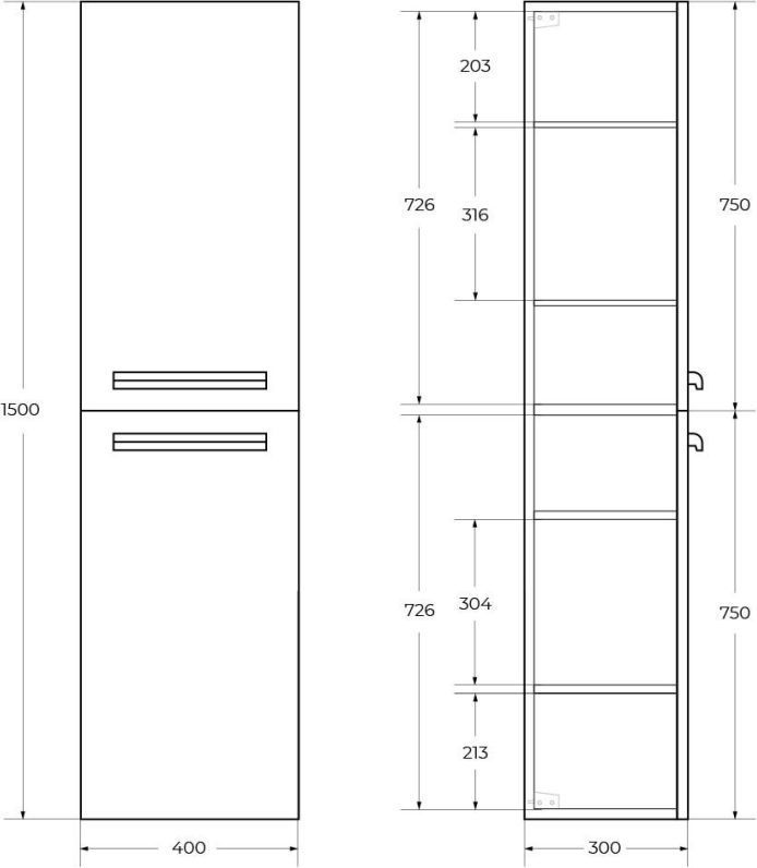 Пенал подвесной Cezares ECO-CER-N-1500-2A-SC-GSO-P 40 см, цвет тёмно-серый матовый. Ручки приобретаются отдельно.