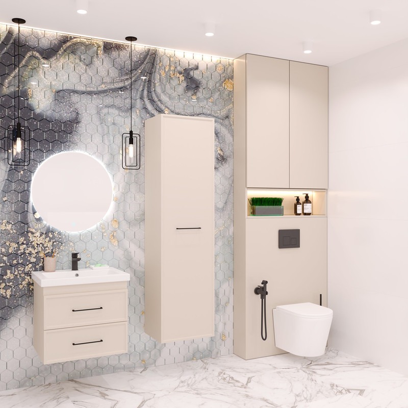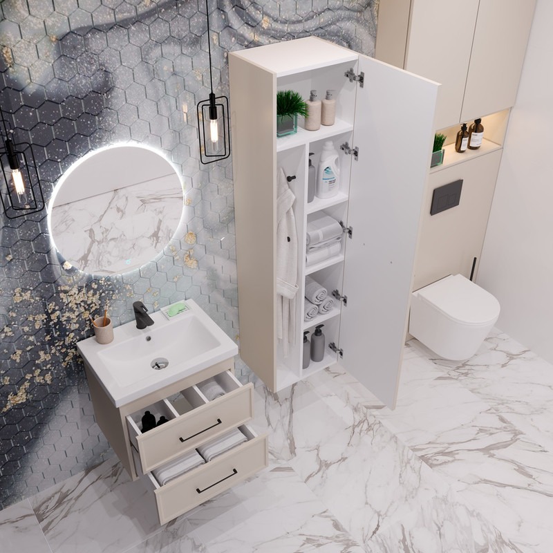 Пенал подвесной EvaGold Leia EG010424 450х1700х355 мм, цвет кашемир софт тач.