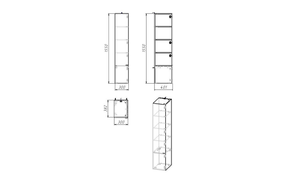 Пенал подвесной EvaGold Tai EG010398 401x1550x300, цвет дуб вотан.