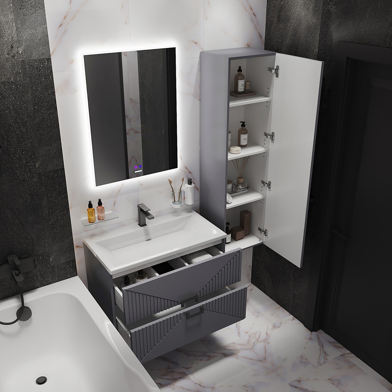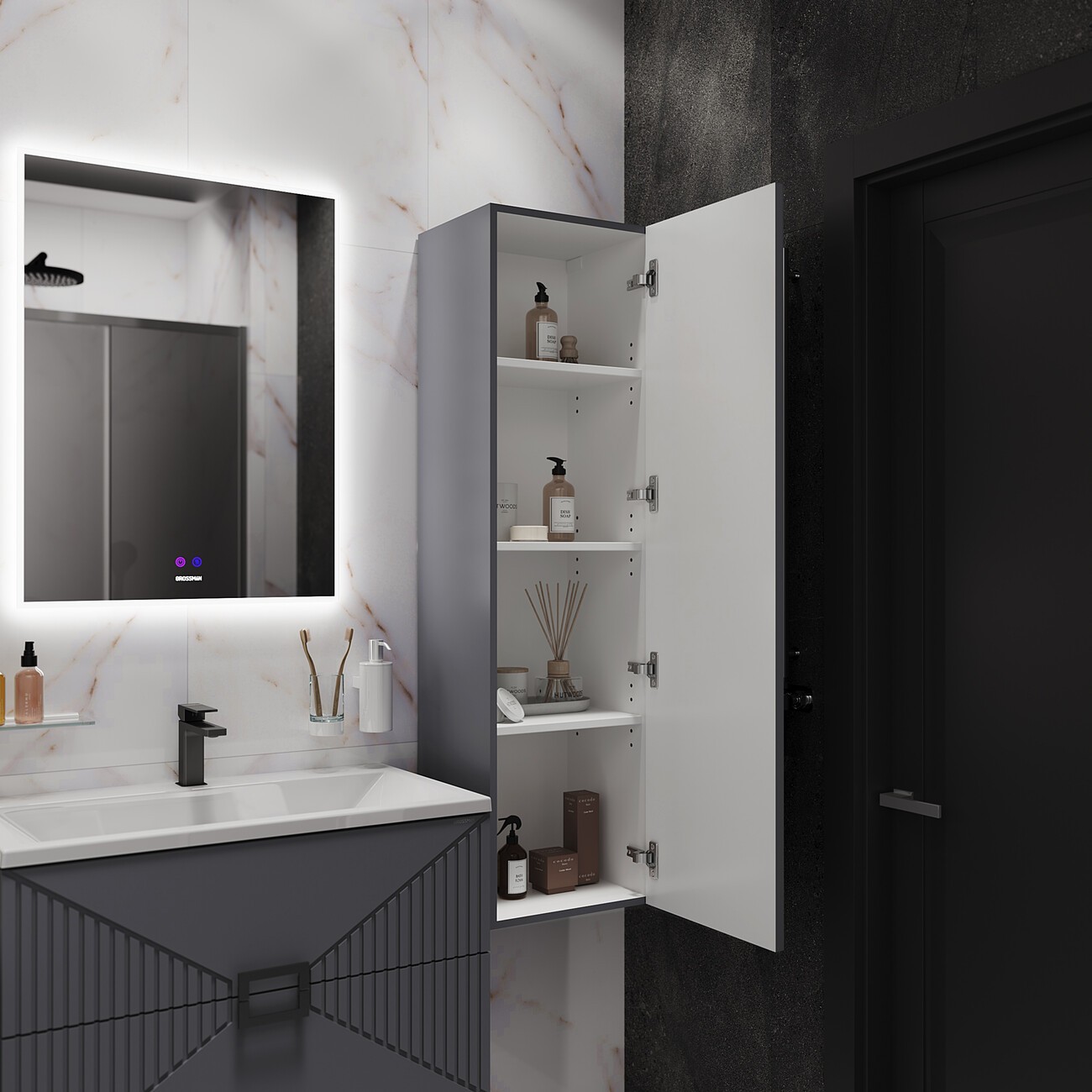 Пенал подвесной Grossman Луксор 42 см 303549, цвет графит матовый.