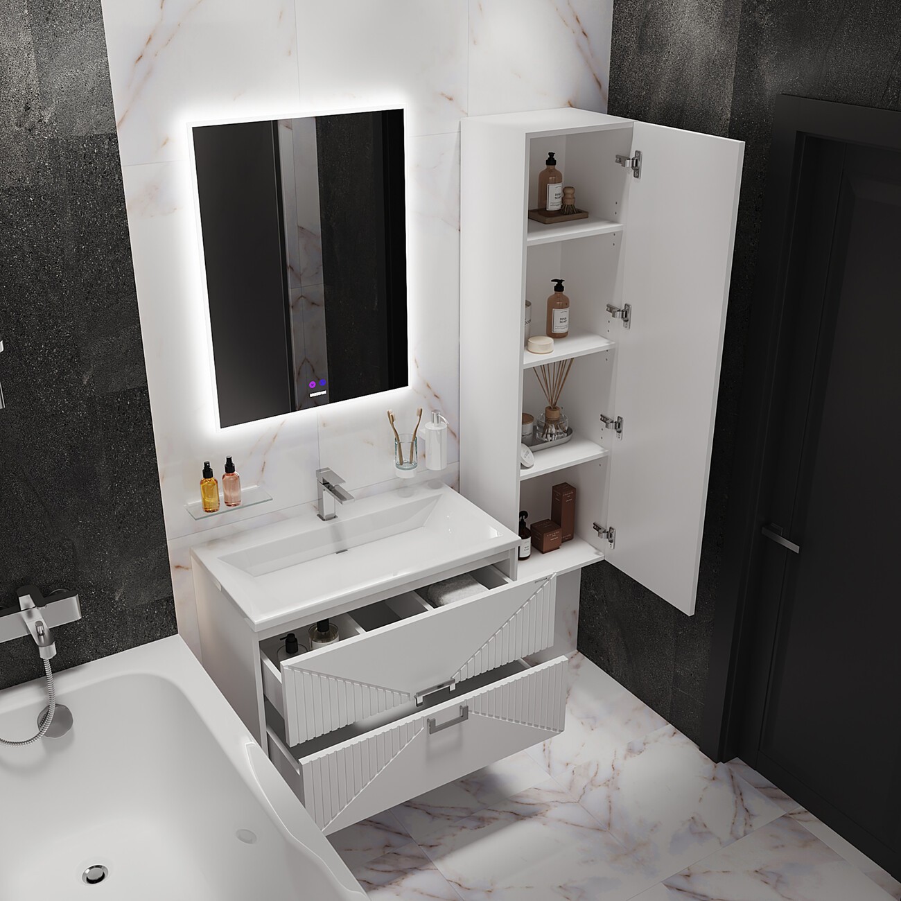 Пенал подвесной Grossman Луксор 42 см 303550, цвет белый матовый.