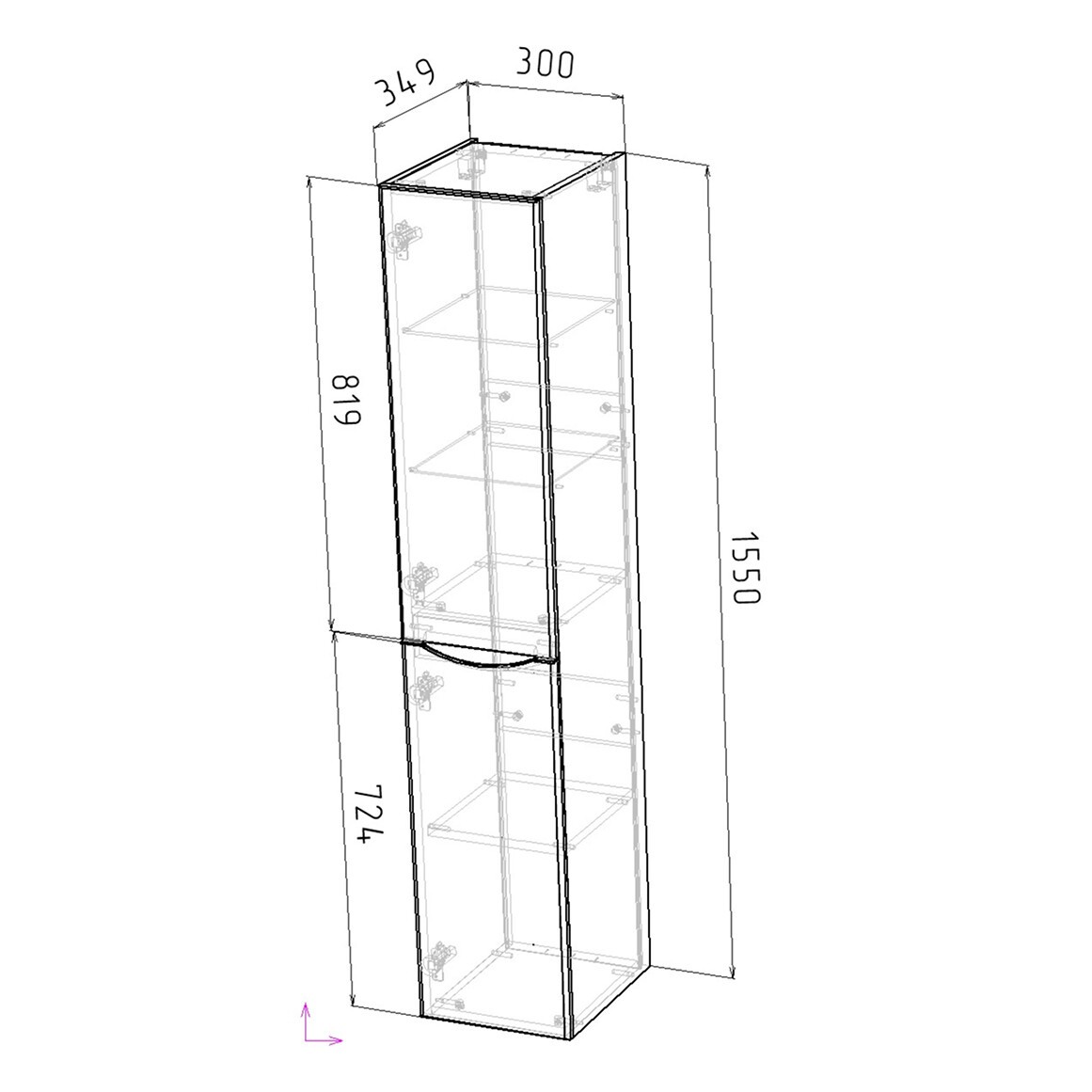 Пенал подвесной Grossman Виста 30 см 303069, правый, цвет белый глянцевый.