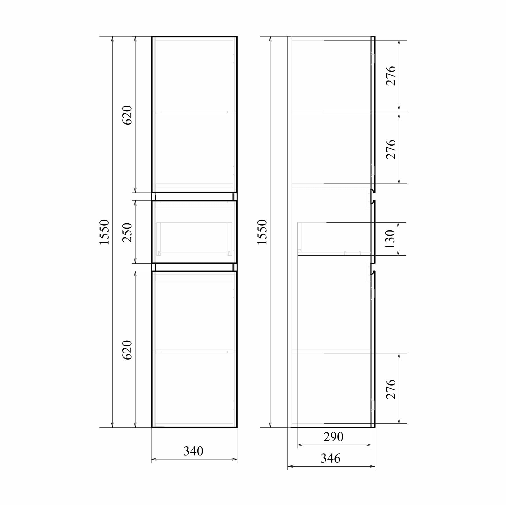 Пенал подвесной Mirsant Next 340, размер 340х346х1550 мм, цвет белый. Дверцы пеналов не установлены изначально, что даёт возможность устанавливать пенал в любой уголок вашей ванной комнаты!