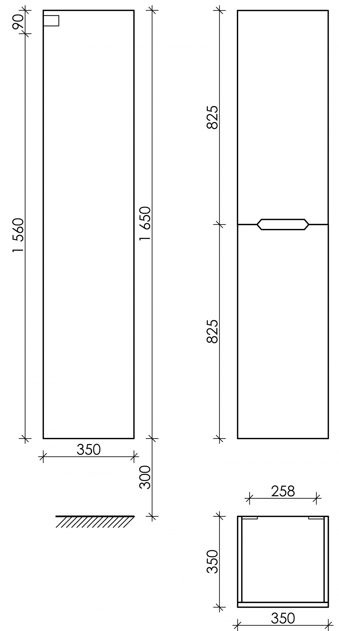 Пенал подвесной Sancos Norma 2.0 PNR2.035W, две дверцы, петли с доводчиками, расположение петель R/L, 350х350х1650 мм, цвет - белый глянец.