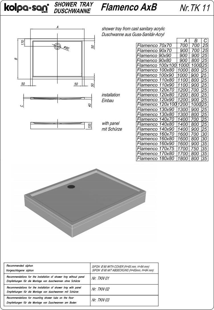 Поддон акриловый Kolpa-San Flamenco 120х90 см, цвет белый. Сифон, панели и каркас приобретаются отдельно.
