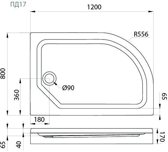 Душевой поддон Тритон, размер 1200х800х170 мм, диаметр слива 90 мм, материал акрил, цвет белый.
