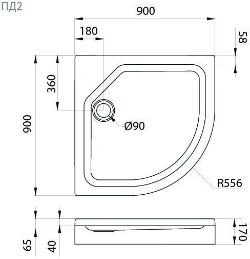Душевой поддон Тритон, размер 900х900х170 мм, диаметр слива 90 мм, материал акрил, каркас и панель в комплекте, цвет белый.