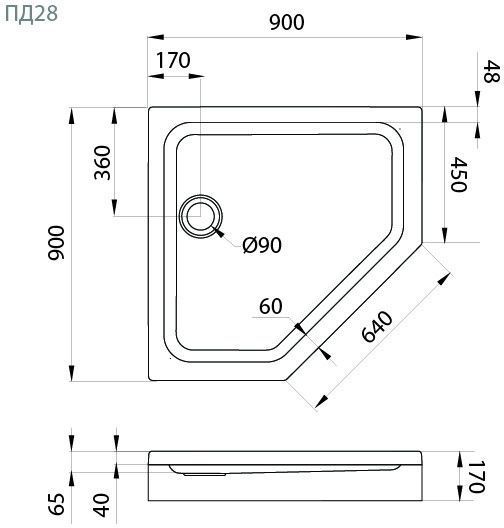 Поддон акриловый Тритон ПД28 90х90 см