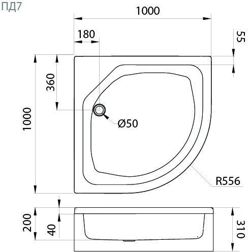Душевой поддон Тритон, размер 1000х1000х310 мм, диаметр слива 52 мм, материал акрил, каркас и панель в комплекте, цвет белый.
