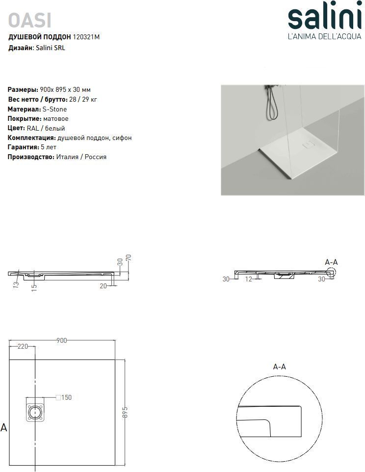 Описание Поддон Salini 120321M
