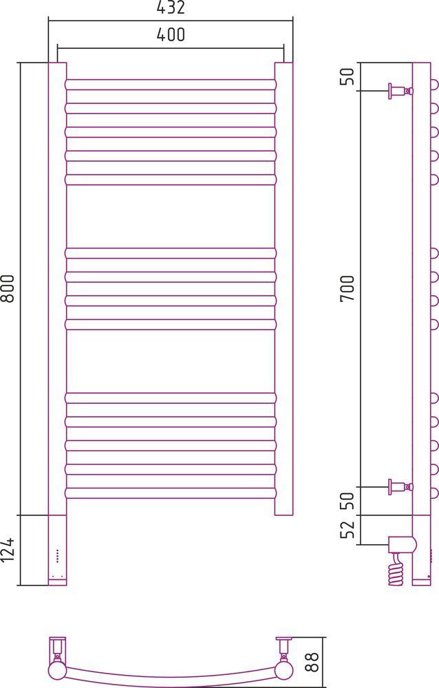 Электрический полотенцесушитель Сунержа Богема 3.0 800х400 мм, 14 перекладин(5-4-5). Мощность 300 Вт, цвет состаренная бронза. Интегрированное в корпус скрытое подключение.