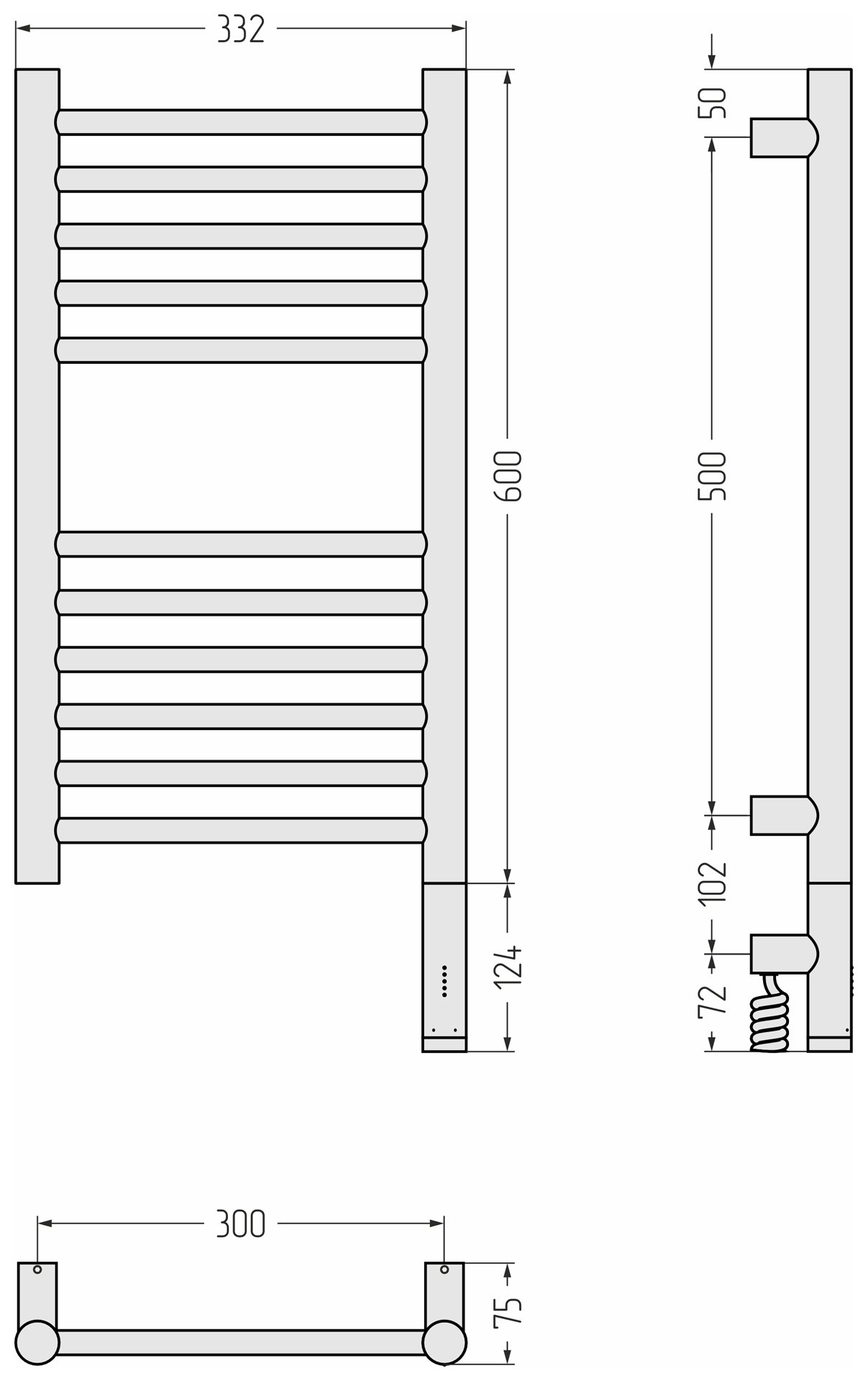 Полотенцесушитель электрический Сунержа Богема 3.1 П11 300x720 мм (прямая перемычка) 022-6005-6030 R, шампань матовый