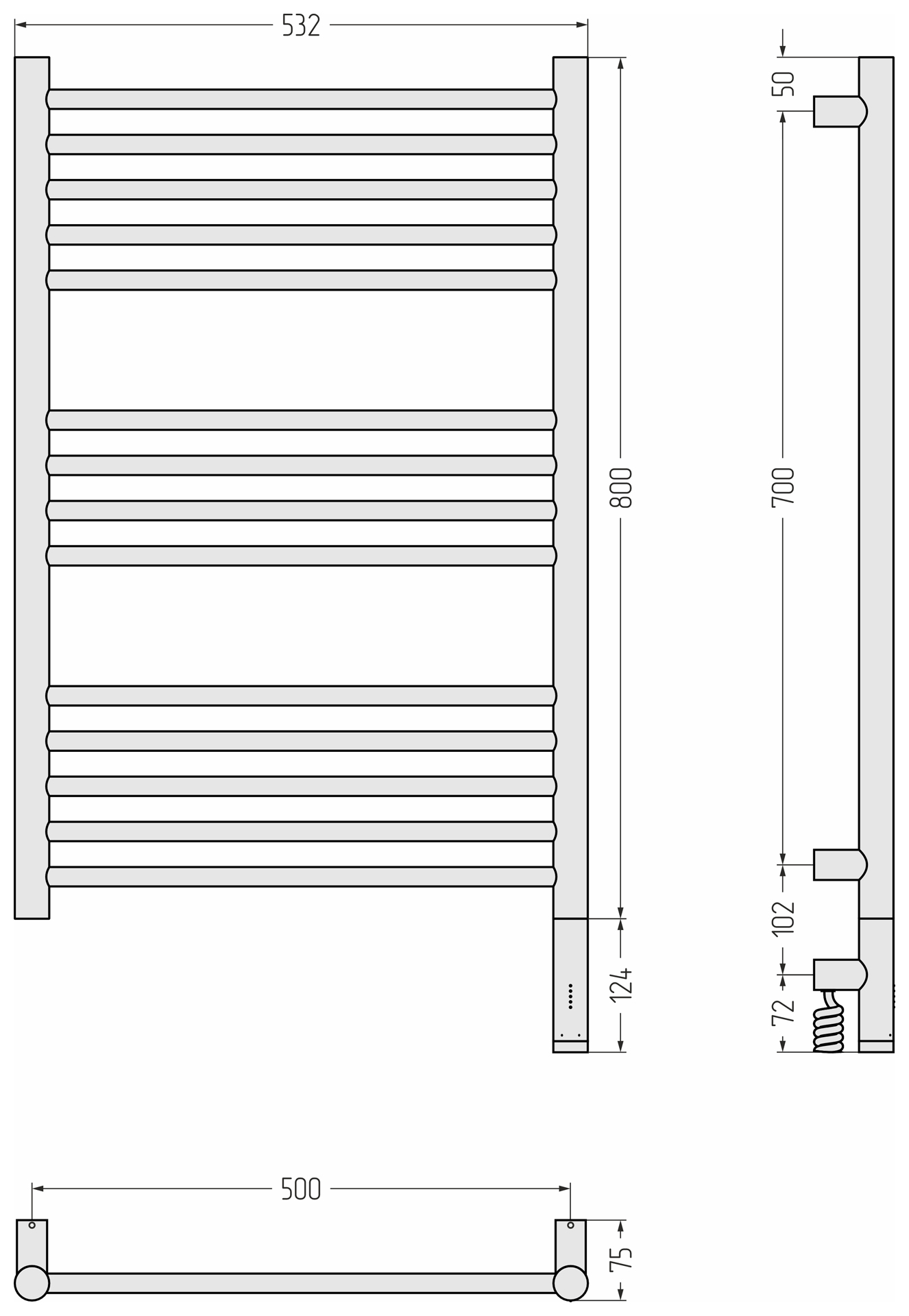 Полотенцесушитель электрический Сунержа Богема 3.1 032-6005-8050, размер 532x924 мм, 14 перекладин, мощность 300 Вт, цвет золото матовое. Скрытое подключение.