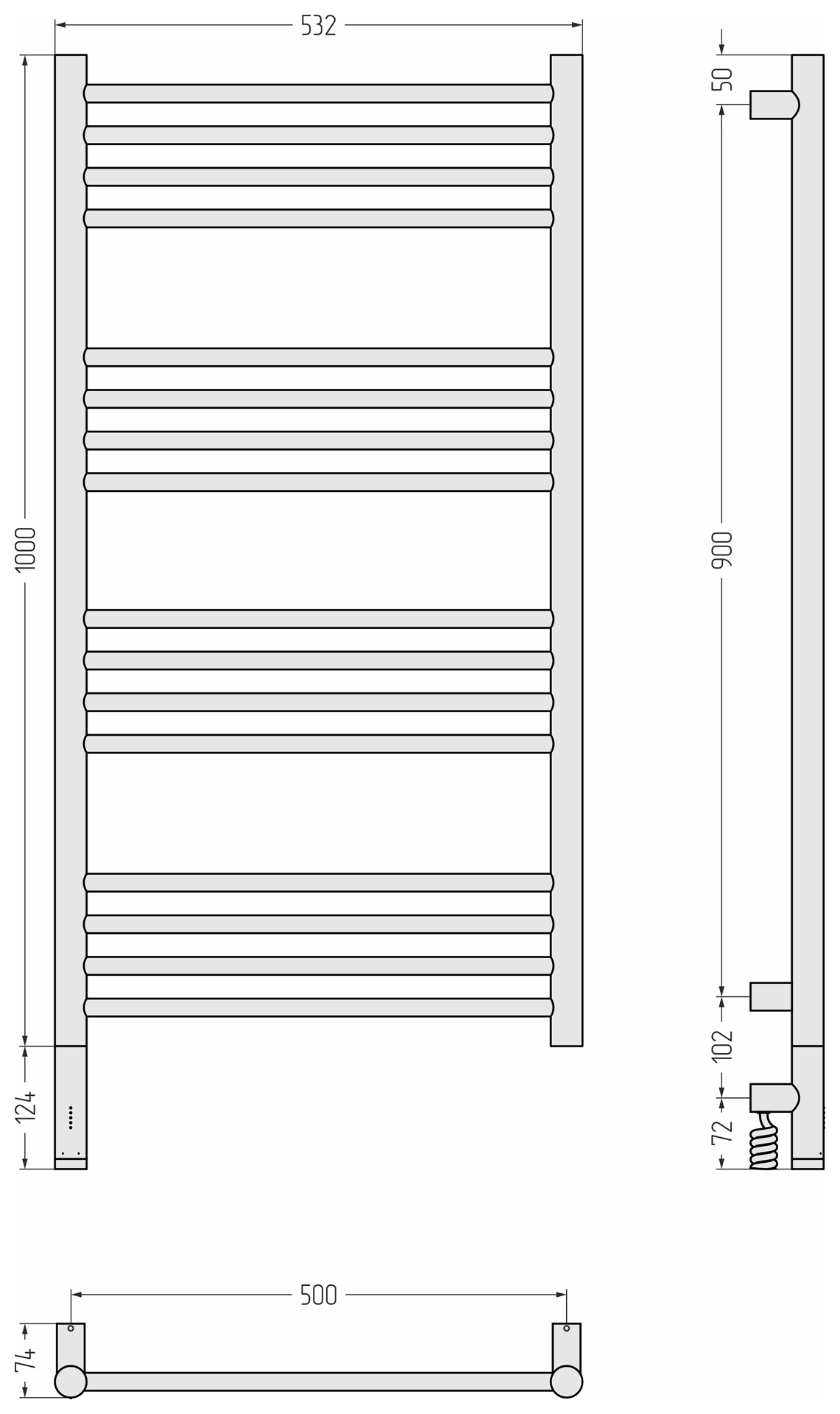 Полотенцесушитель электрический Сунержа Богема 3.1 П16 500x1120 мм (прямая перемычка) 022-6004-1050 L, шампань матовый
