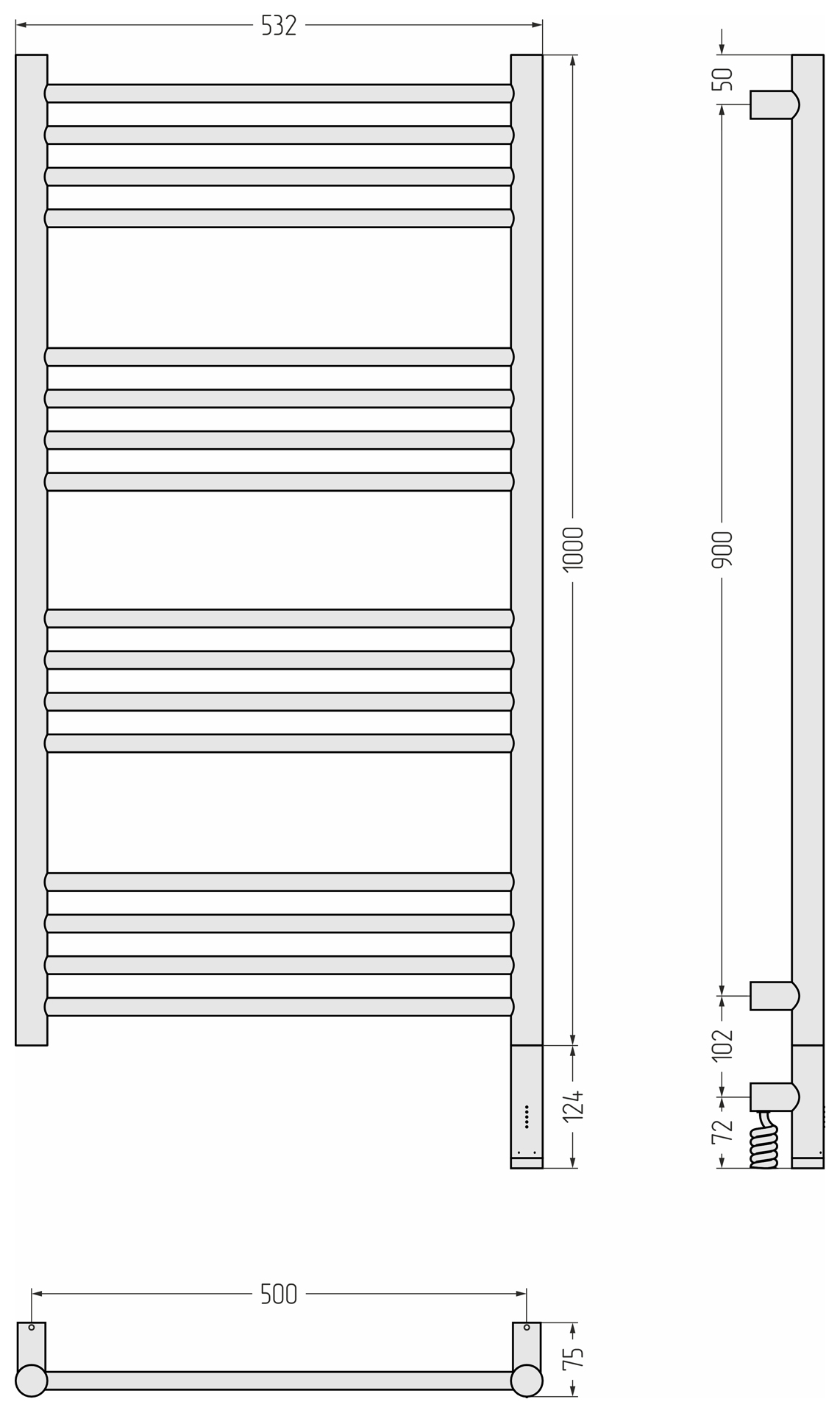 Полотенцесушитель электрический Сунержа Богема 3.1 П16 500x1120 мм (прямая перемычка) 022-6005-1050 R, шампань матовый