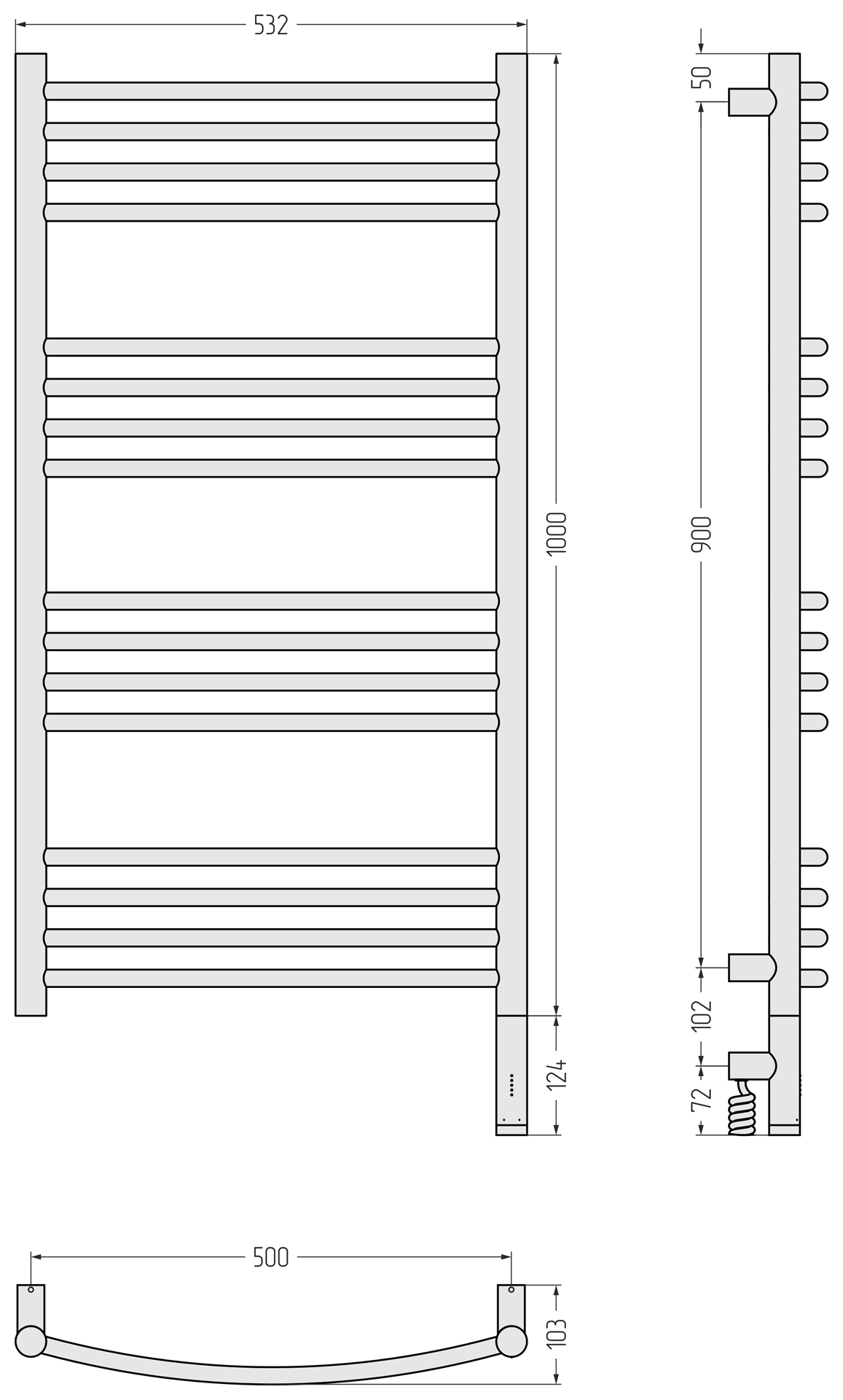 Размер полотенцесушителя - мм
