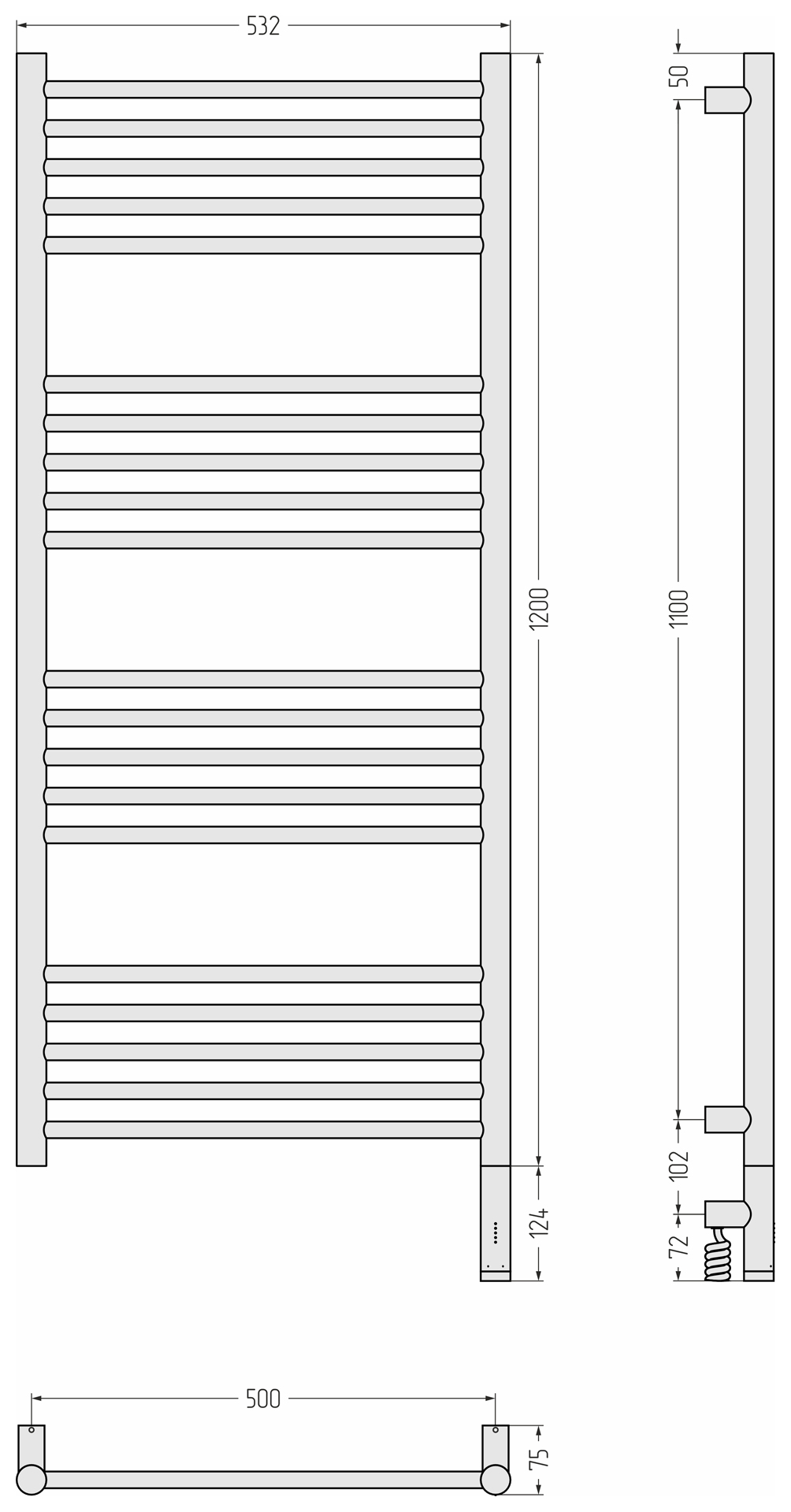 Полотенцесушитель электрический Сунержа Богема 3.1 П20 500x1320 мм (прямая перемычка) 032-6005-1250 R, золото матовое