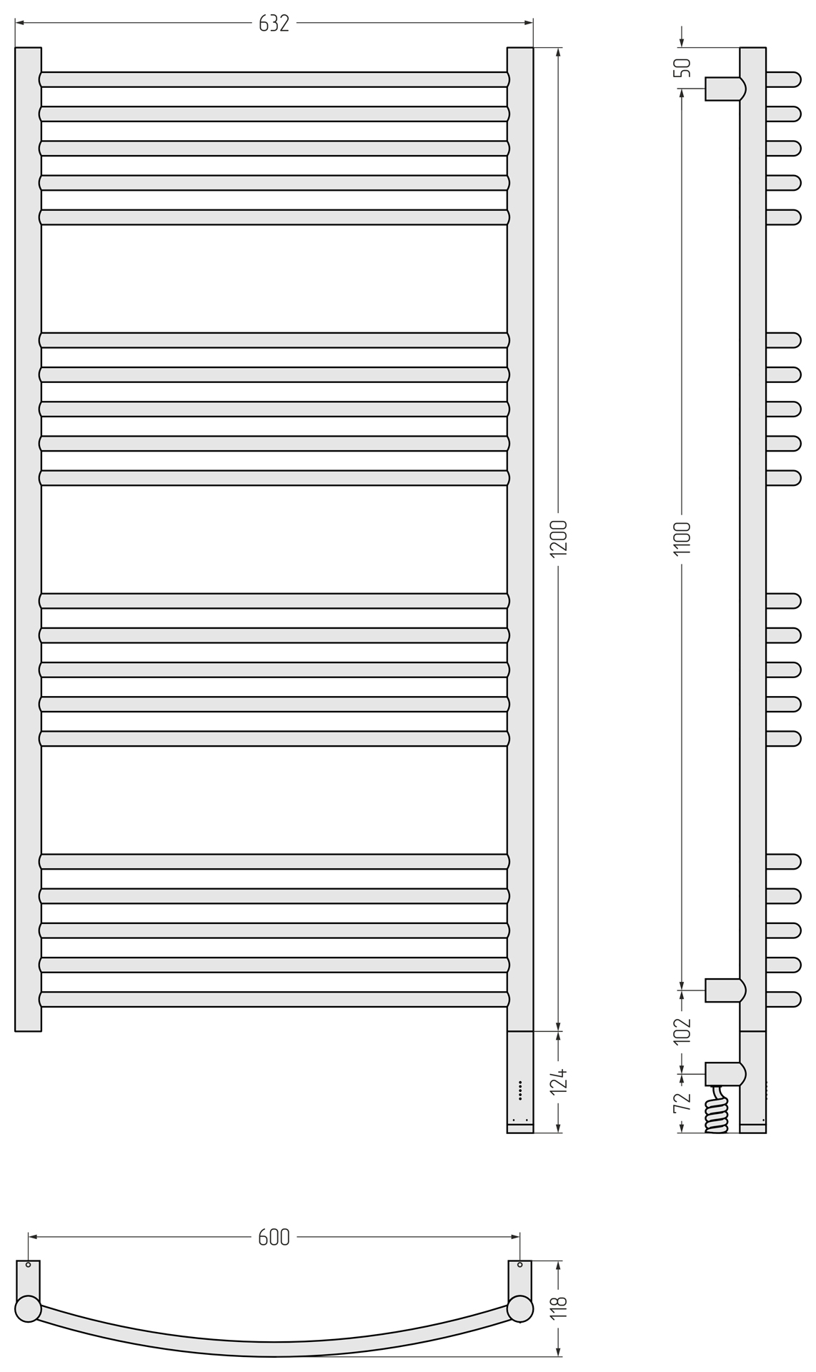 Полотенцесушитель электрический Сунержа Богема 3.1 П20 600x1320 мм (выгнутая перемычка) 31-6003-1260 R, чёрный матовый
