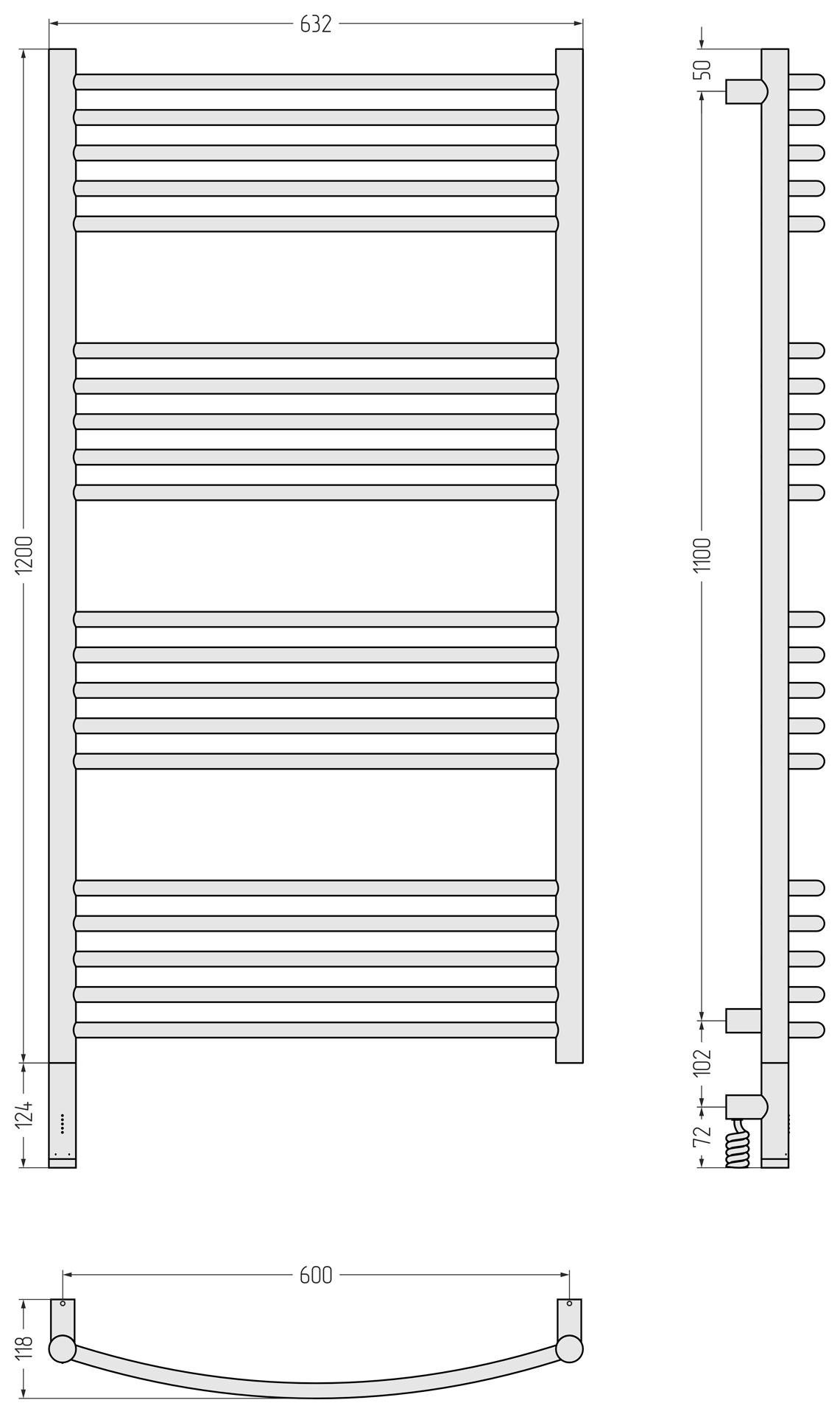 Полотенцесушитель электрический Сунержа Богема 3.1 П20 600x1320 мм (выгнутая перемычка) 32-6002-1260 L, золотой шёлк