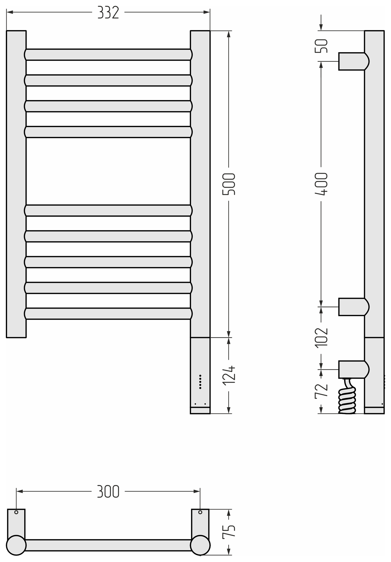 Полотенцесушитель электрический Сунержа Богема 3.1 05-6005-5030, размер 332x624 мм, 9 перекладин, мощность 300 Вт, цвет состаренная бронза. Скрытое подключение.