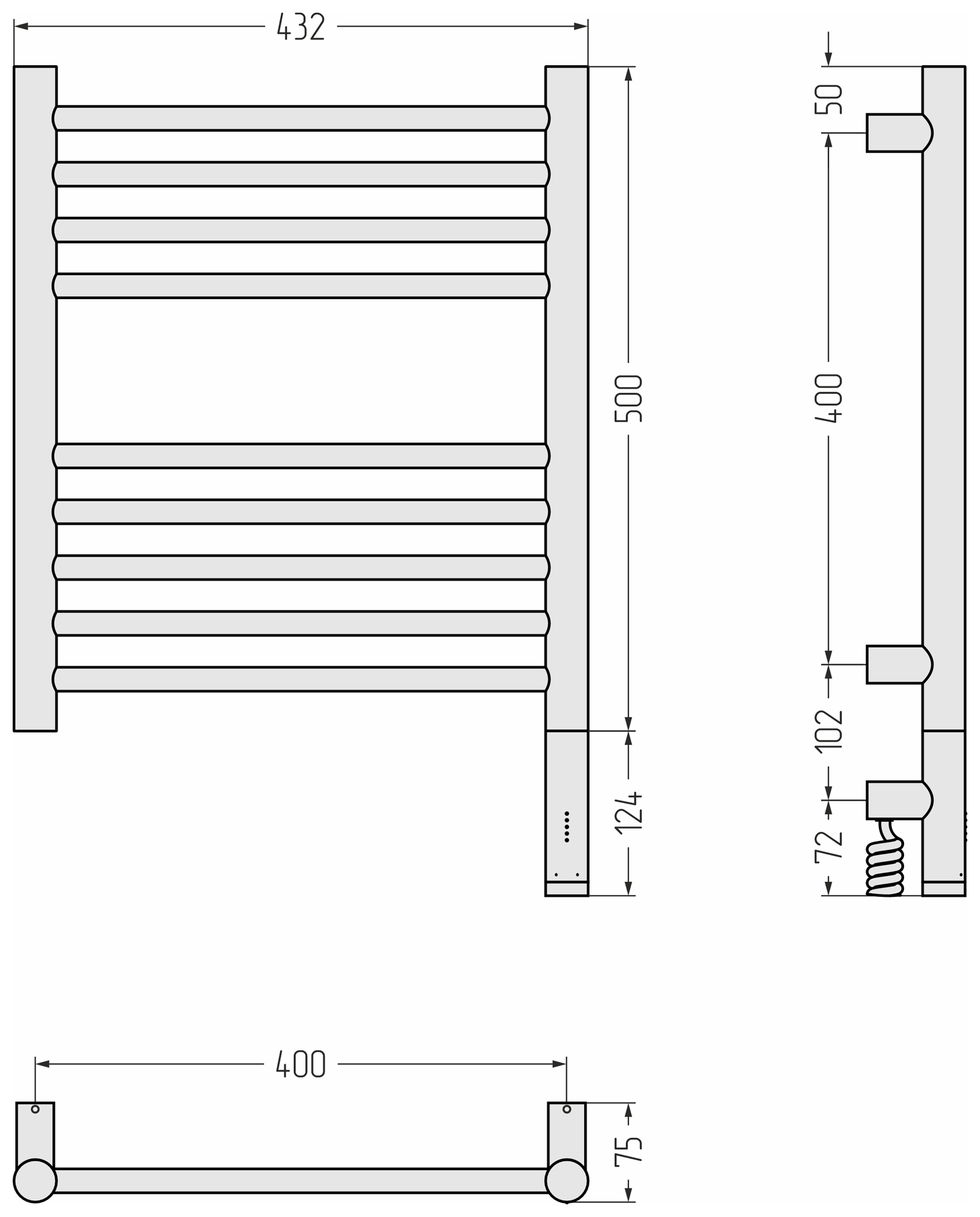 Полотенцесушитель электрический Сунержа Богема 3.1 П9 400x620 мм (прямая перемычка) 15-6005-5040 R, тёмный титан муар
