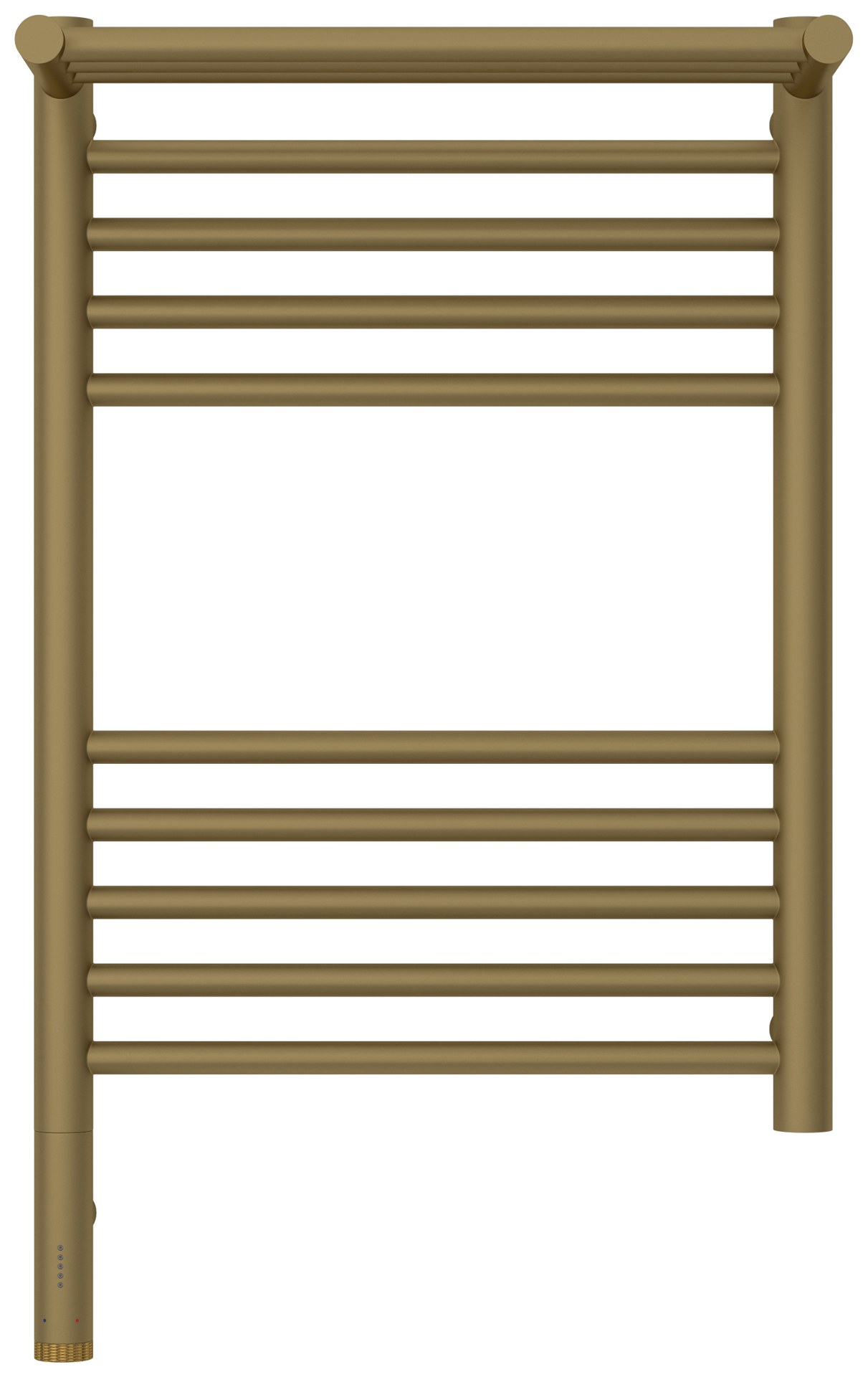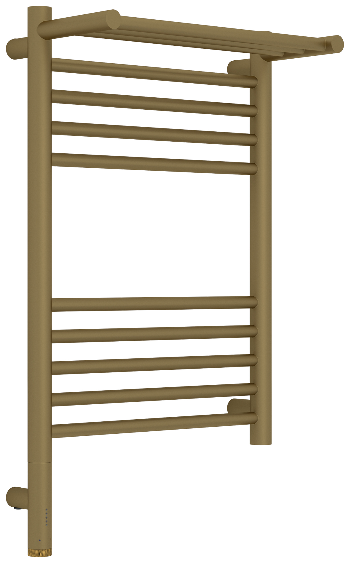 Полотенцесушитель электрический Сунержа Богема 3.1 с 1 полкой 032-6006-6040, размер 432x724 мм, 10 перекладин, мощность 300 Вт, цвет золото матовое. Скрытое подключение.