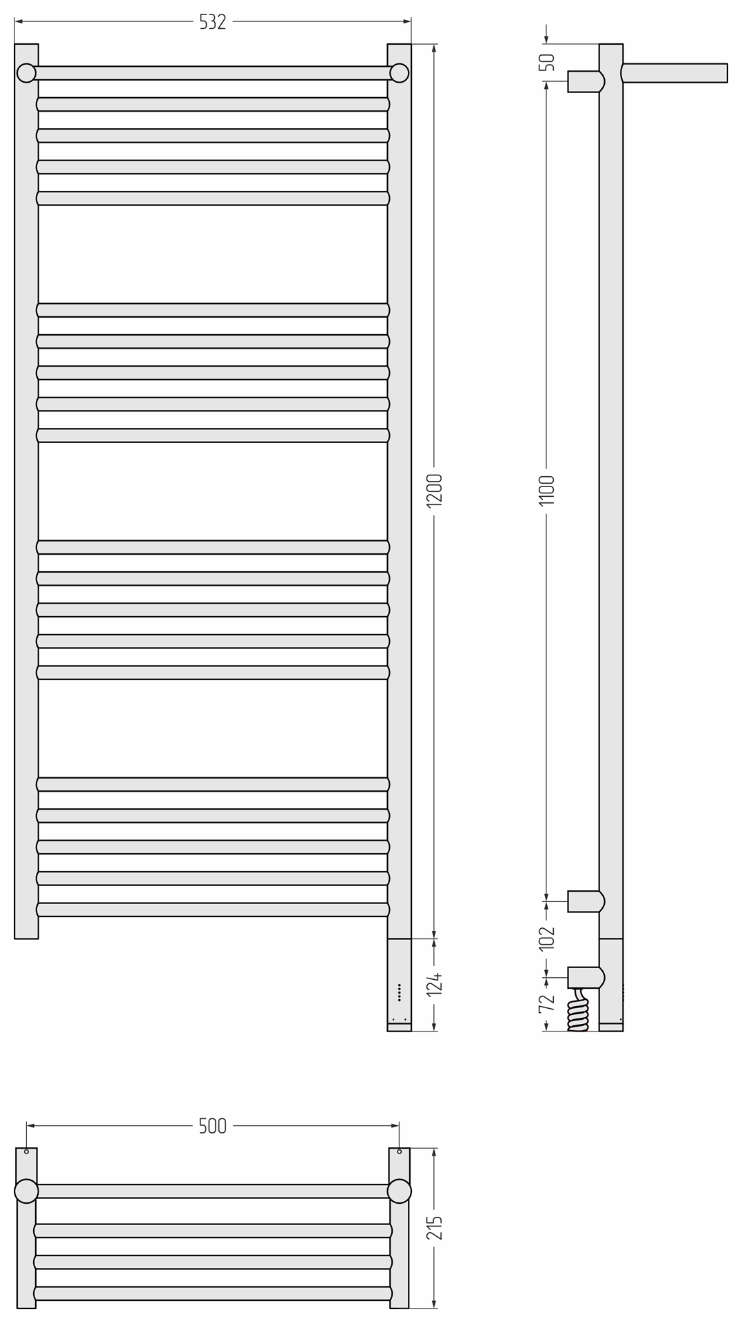 Полотенцесушитель электрический Сунержа Богема 3.1 с полкой П20 500x1320 мм 051-6007-1250 R, состаренная латунь