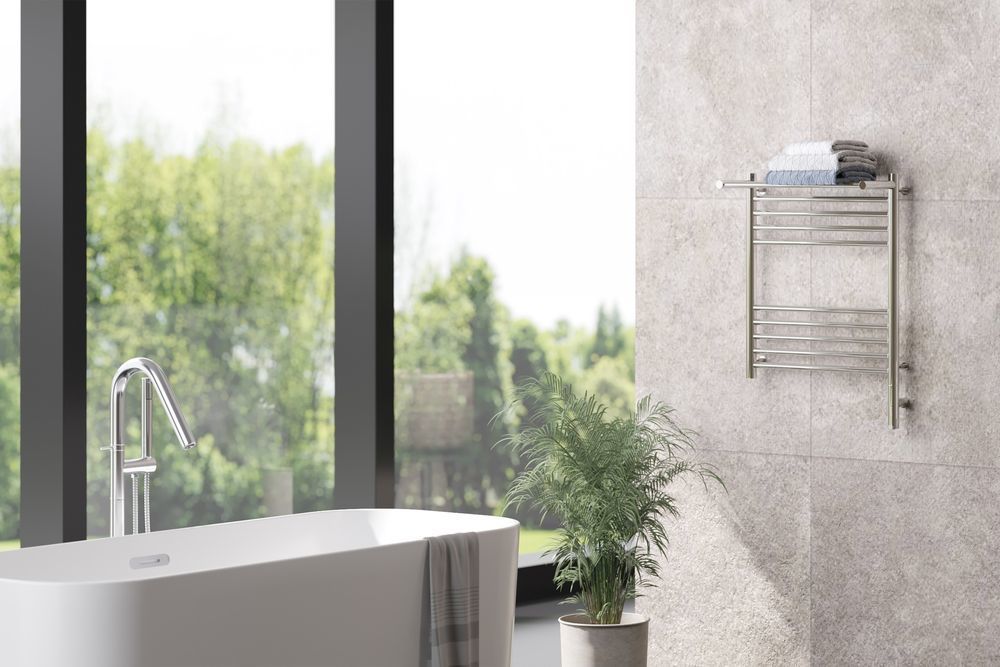 Электрический полотенцесушитель Сунержа Богема с полкой 3.0 600х500 мм, 10 перекладин(5-5). Мощность 300 Вт, цвет хром. Интегрированное в корпус скрытое подключение.