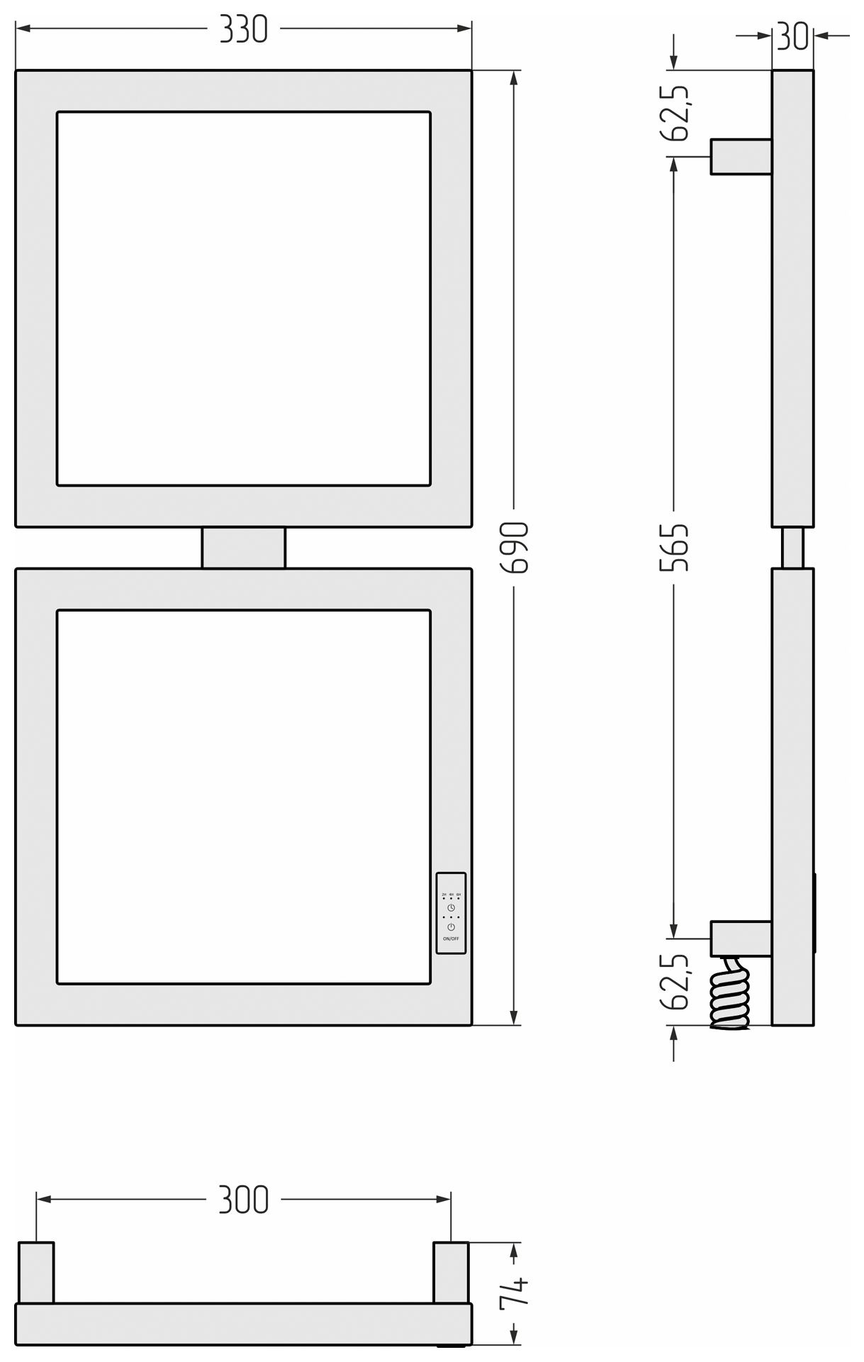 Полотенцесушитель электрический Сунержа Этюд П4 300x690 мм 30-0845-6030 R, белый матовый