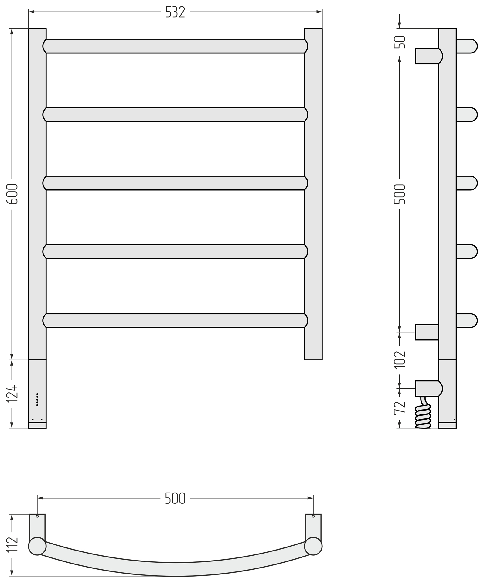Полотенцесушитель электрический Сунержа Галант 3.1 П5 500x720 мм 00-6000-6050 L, хром