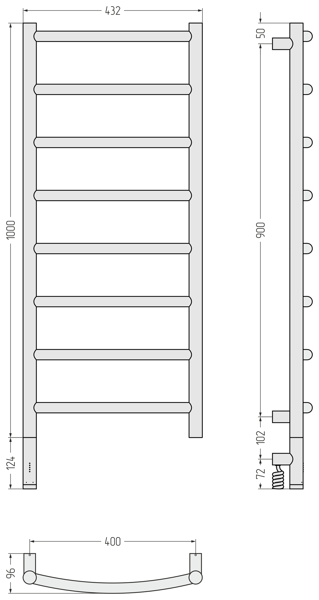 Полотенцесушитель электрический Сунержа Галант 3.1 П8 400x1120 мм 31-6000-1040 L, чёрный матовый