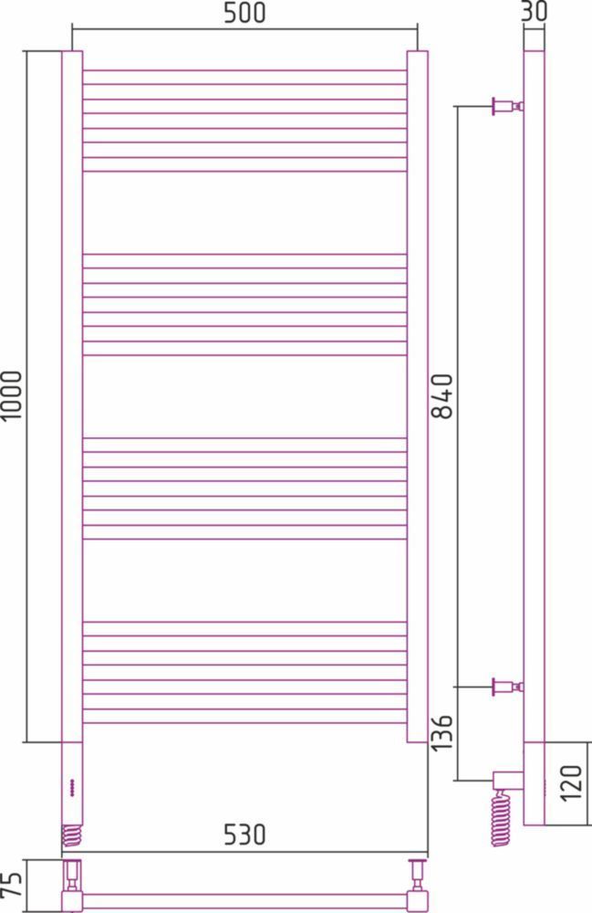 Возможна покраска изделия в широкий спектр цветовых решений, примеры палитры можно выбрать на картинке товара. Цена полотенцесушителя в зависимости от цвета может меняться. Цену уточняйте у менеджера.