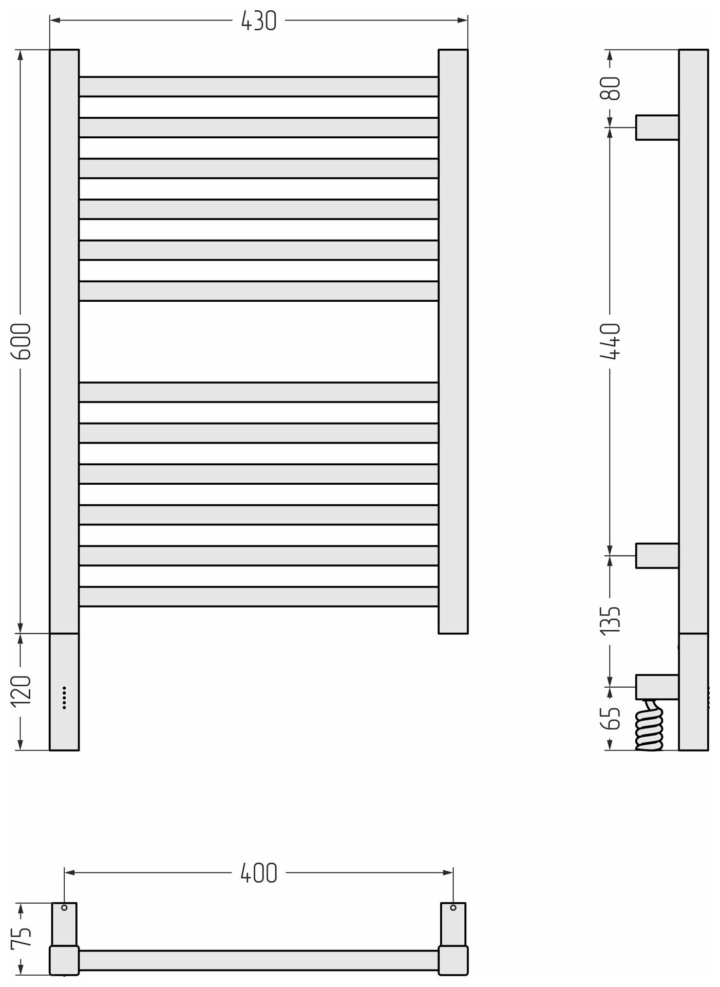 Полотенцесушитель электрический Сунержа Модус 3.1 П12 400x720 мм 15-5900-6040 L, тёмный титан муар