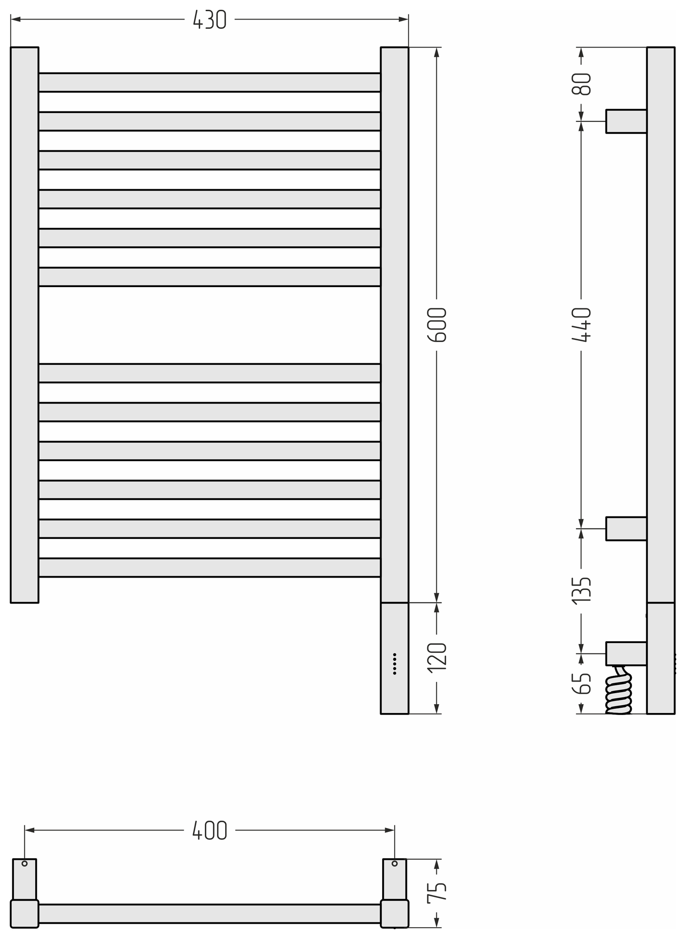 Полотенцесушитель электрический Сунержа Модус 3.1 П12 400x720 мм 31-5901-6040 R, чёрный матовый