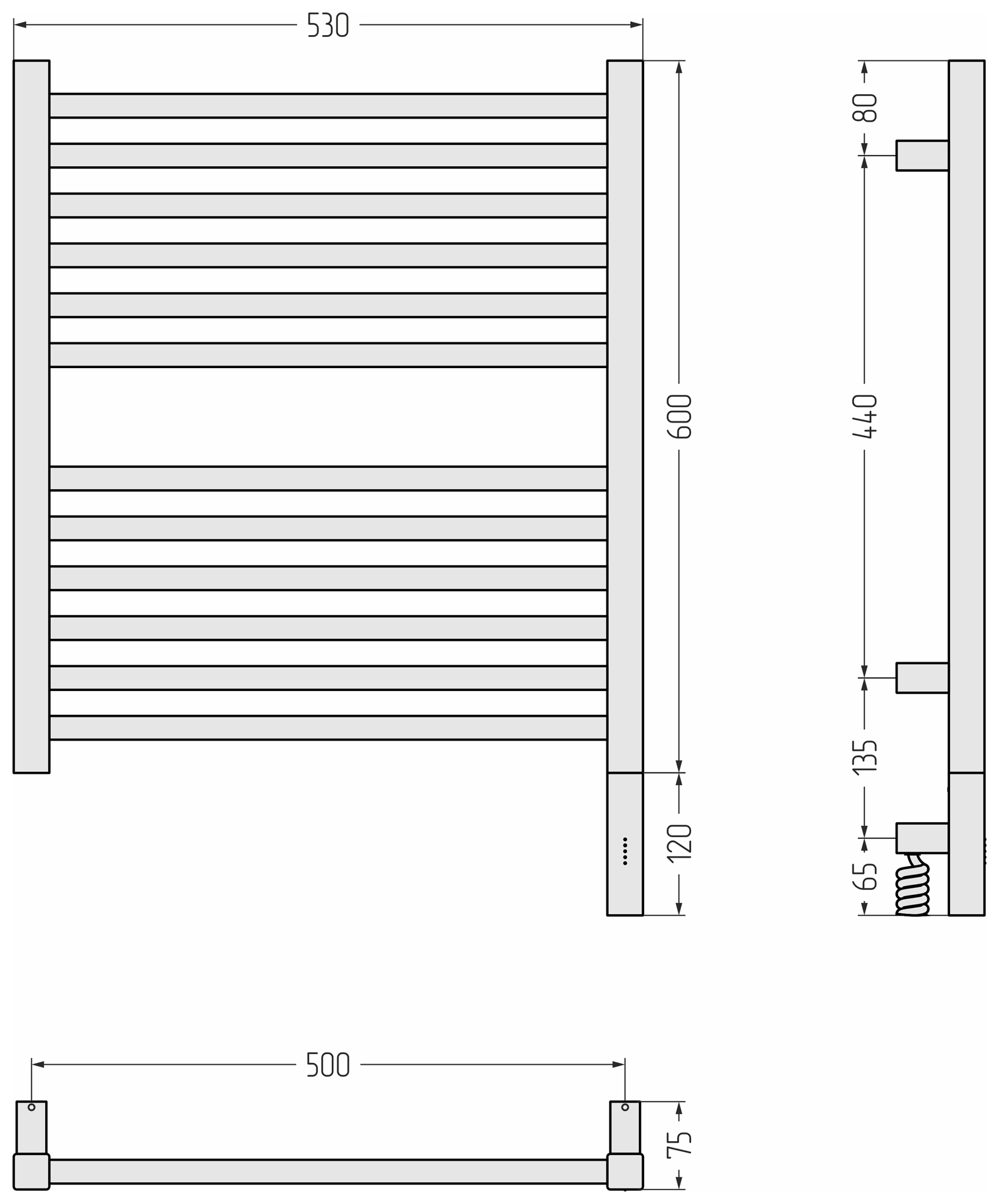 Полотенцесушитель электрический Сунержа Модус 3.1 П12 500x720 мм 022-5901-6050 R, шампань матовый