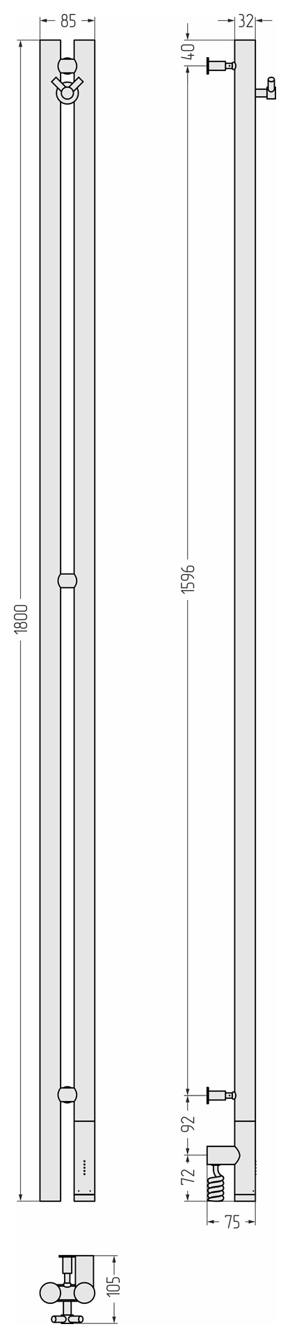 Полотенцесушитель электрический Сунержа Нюанс 3.0 П2 100x1800 мм 032-5843-1853 R, золото матовое