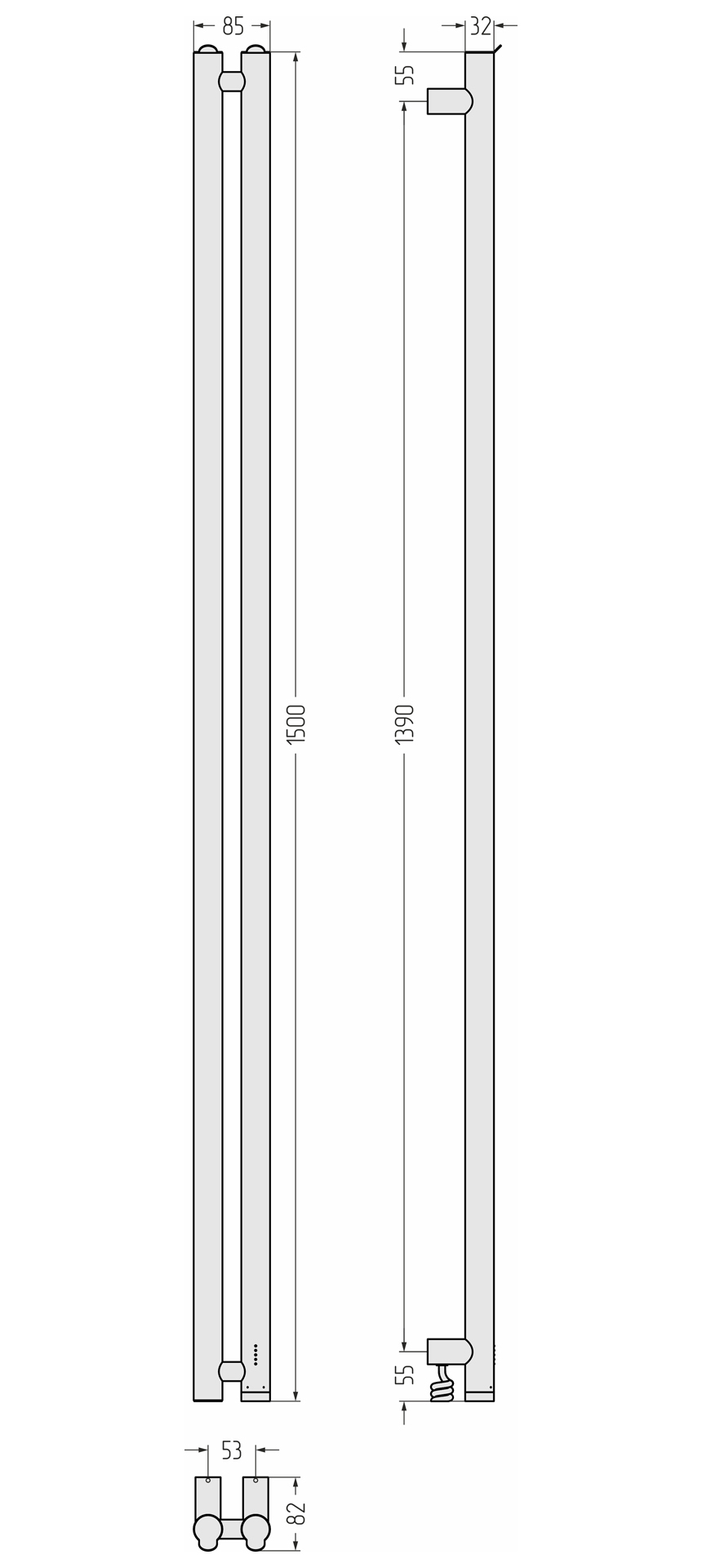 Полотенцесушитель электрический Сунержа Нюанс 4.0 П2 50x1500 мм 31-0881-1553 R, чёрный матовый
