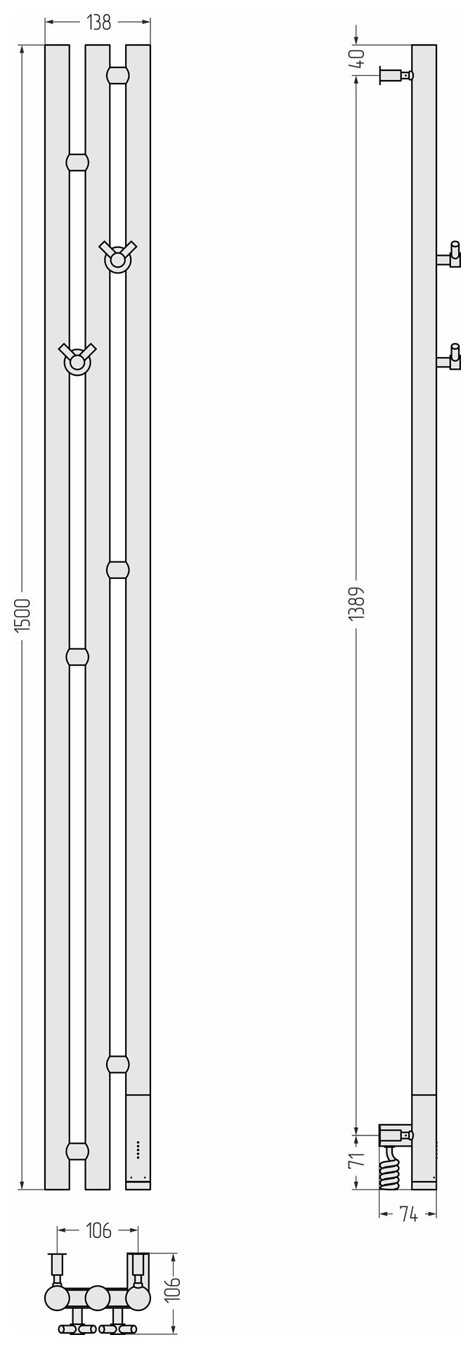 Полотенцесушитель электрический Сунержа Терция 3.0 П3 100x1500 мм 05-5845-1511 R, состаренная бронза