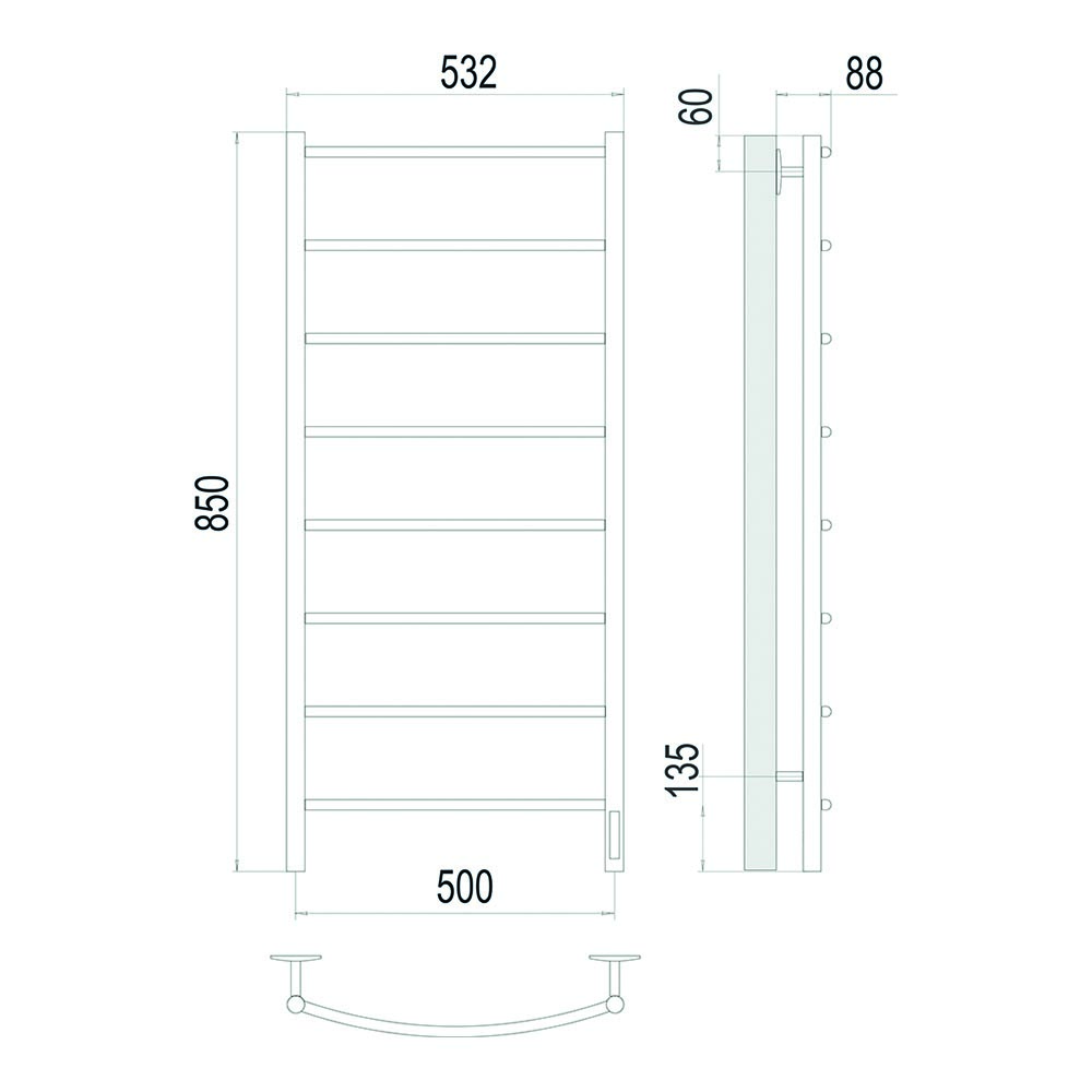 Полотенцесушитель электрический Terminus Классик П8 500x850 мм 4670078561411, сатин