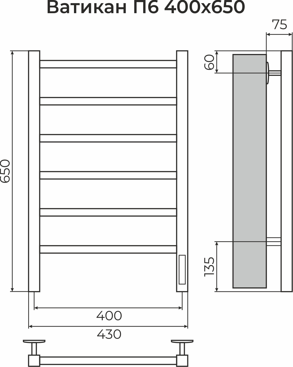 Полотенцесушитель электрический Terminus Ватикан П6 400x650 мм 4670078557148
