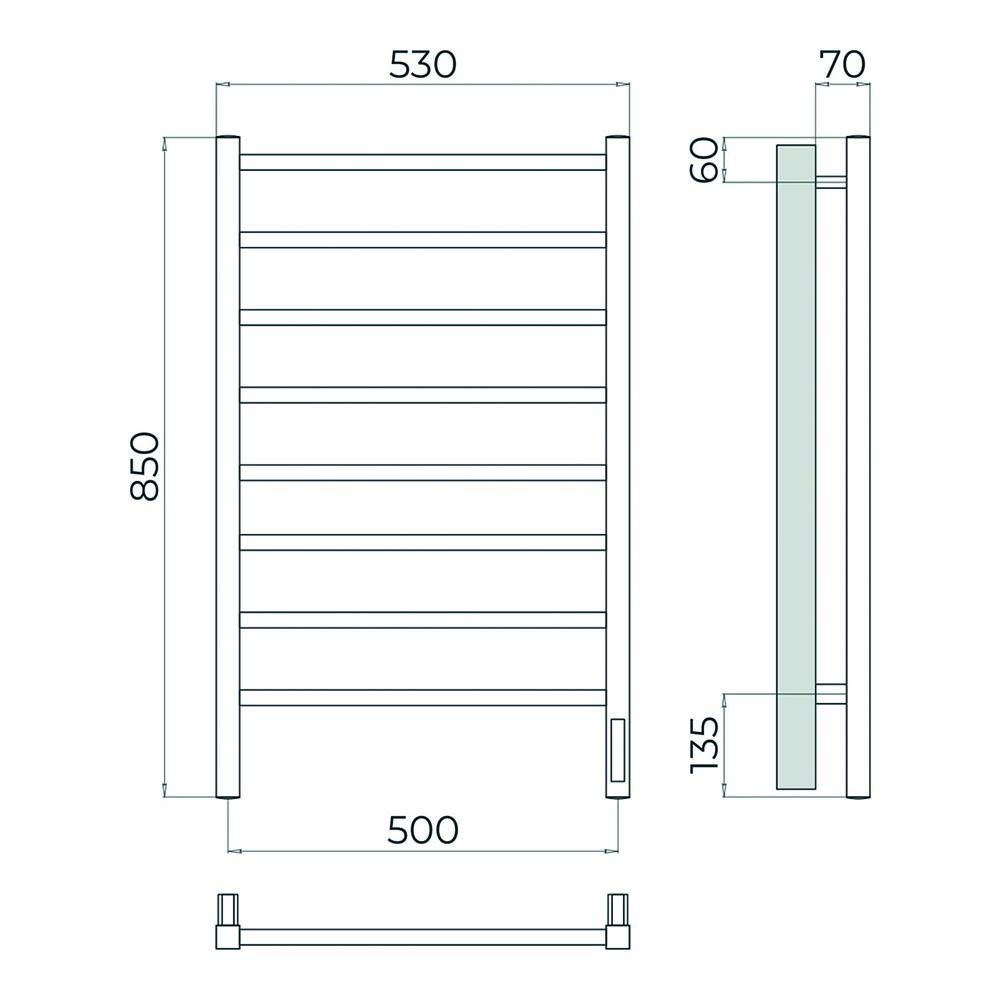 Полотенцесушитель электрический Terminus Ватикан 4670078560445, размер 530x850 мм, 8 перекладин, цвет сатин.