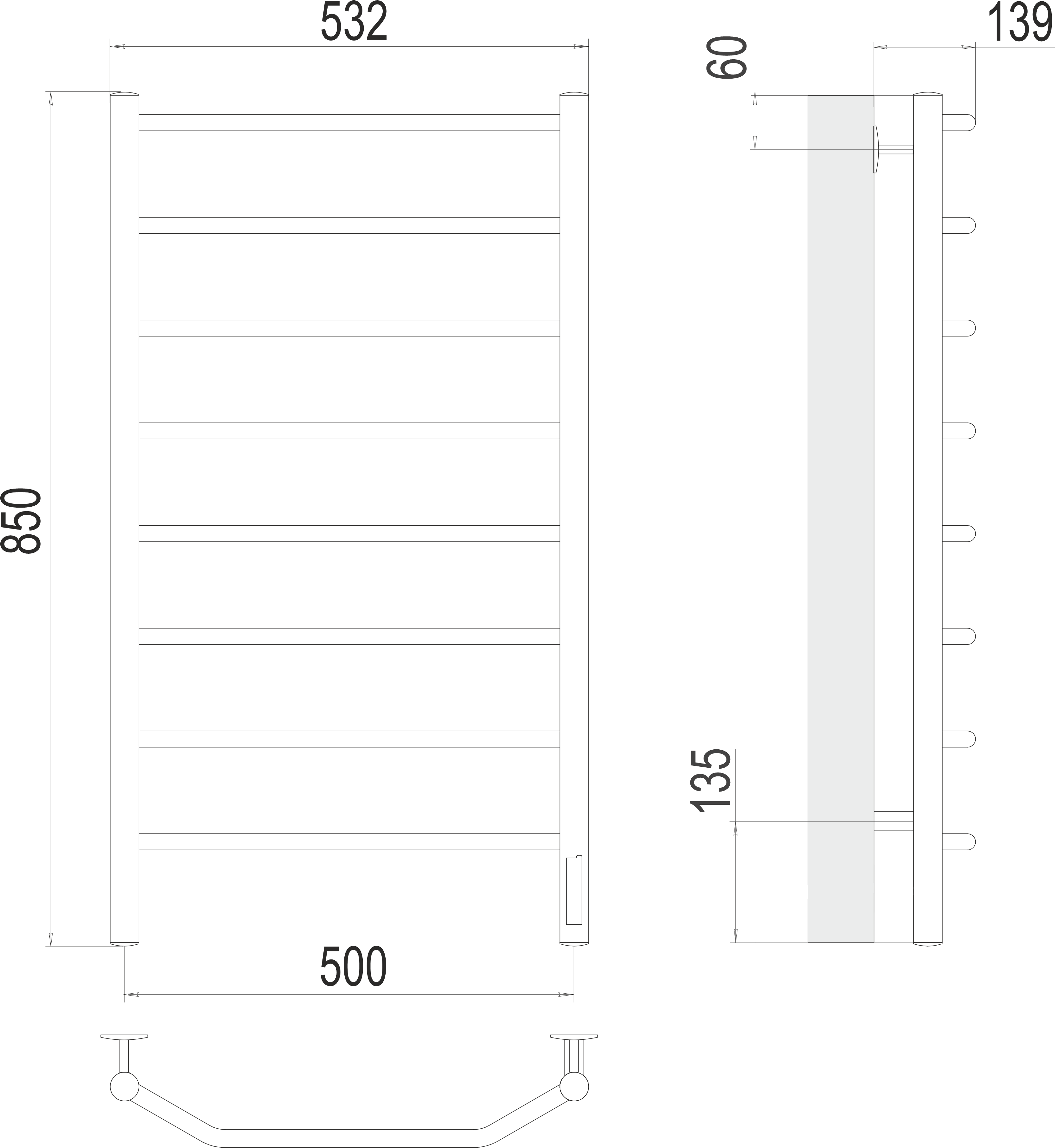 Полотенцесушитель электрический Terminus Виктория П8 500x850 мм 4670078531216