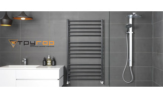 - Нагревательным элементом в полотенцесушителе является греющий кабель — аналог «теплого пола», кабель заправляется внутрь каждой трубы и передает тепло на поверхность изделия. Во включенном состоянии постоянно поддерживается температура 45-55 градусов.