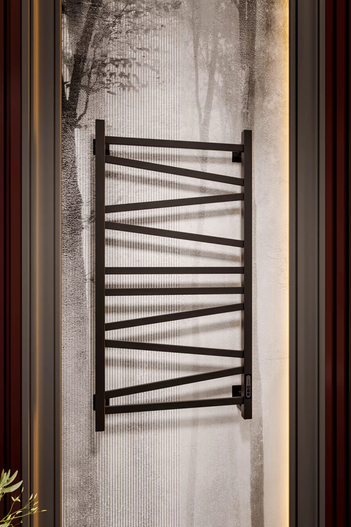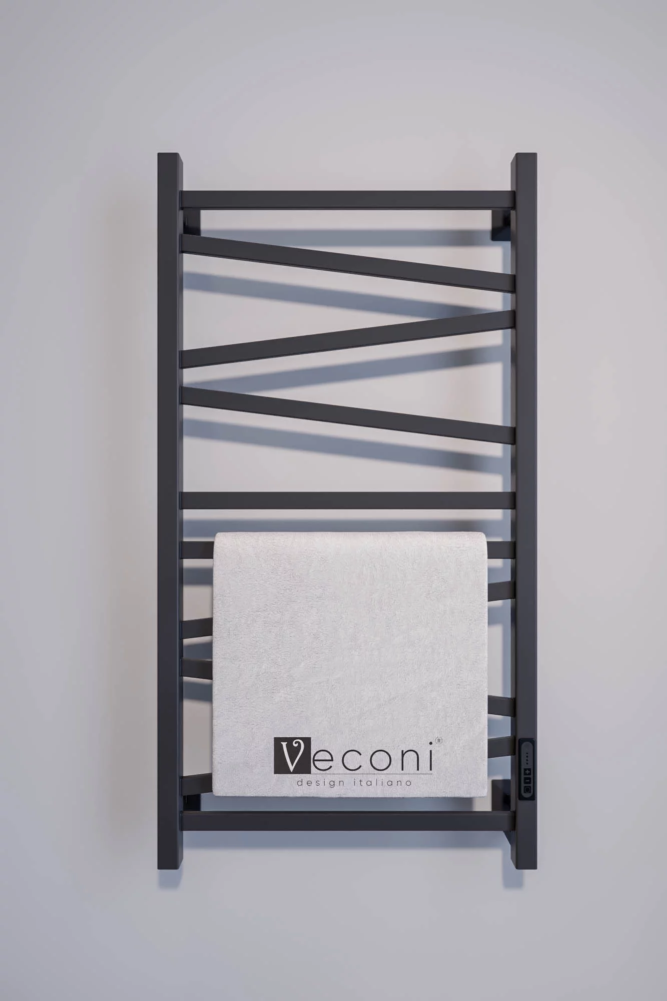 Полотенцесушитель электрический Veconi Barro-C B10050B-C, размер 500х1000 мм, 10 перекладин, мощность 165 Вт. Скрытое подключение. Цвет чёрный.